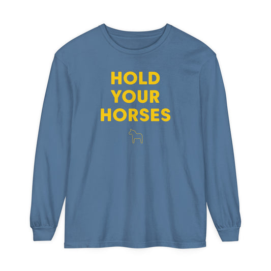 HOLD YOUR HORSES Unisex Garment-dyed Long Sleeve T-Shirt